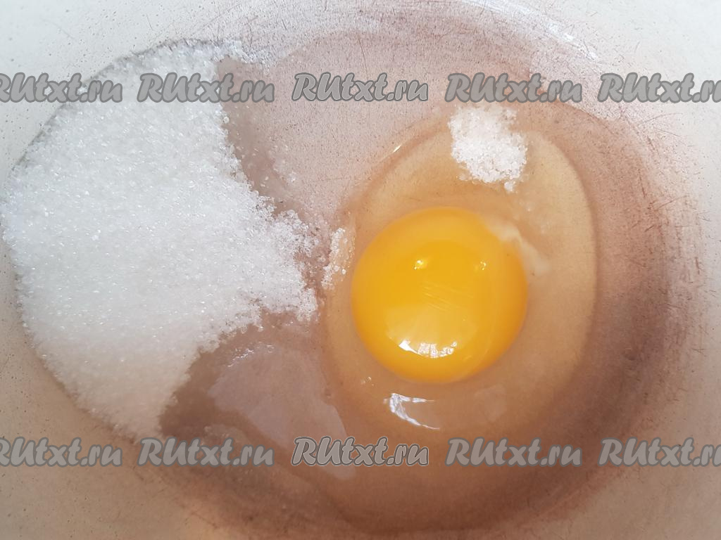 Взбить яйцо, сахар, соль миксером в течение минуты.