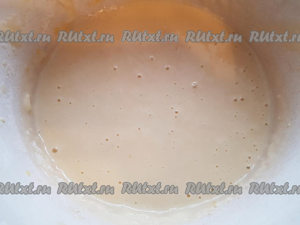 Далее добавить муку и снова взбить тесто миксером до однородности (взбивать 1-2 минуты).