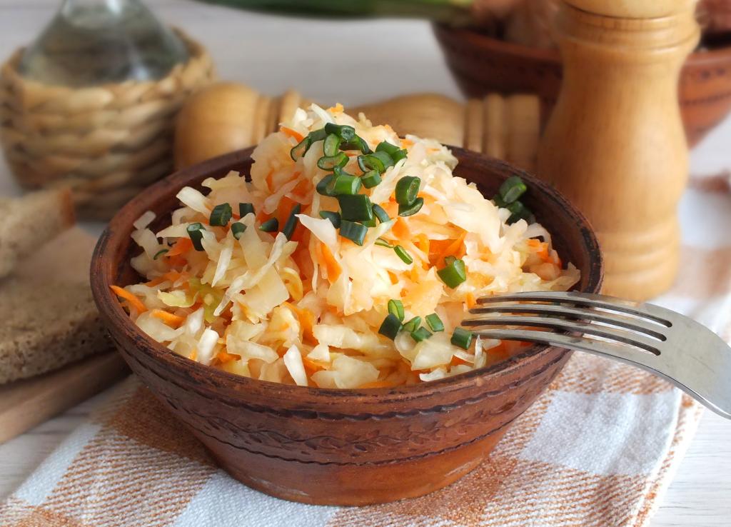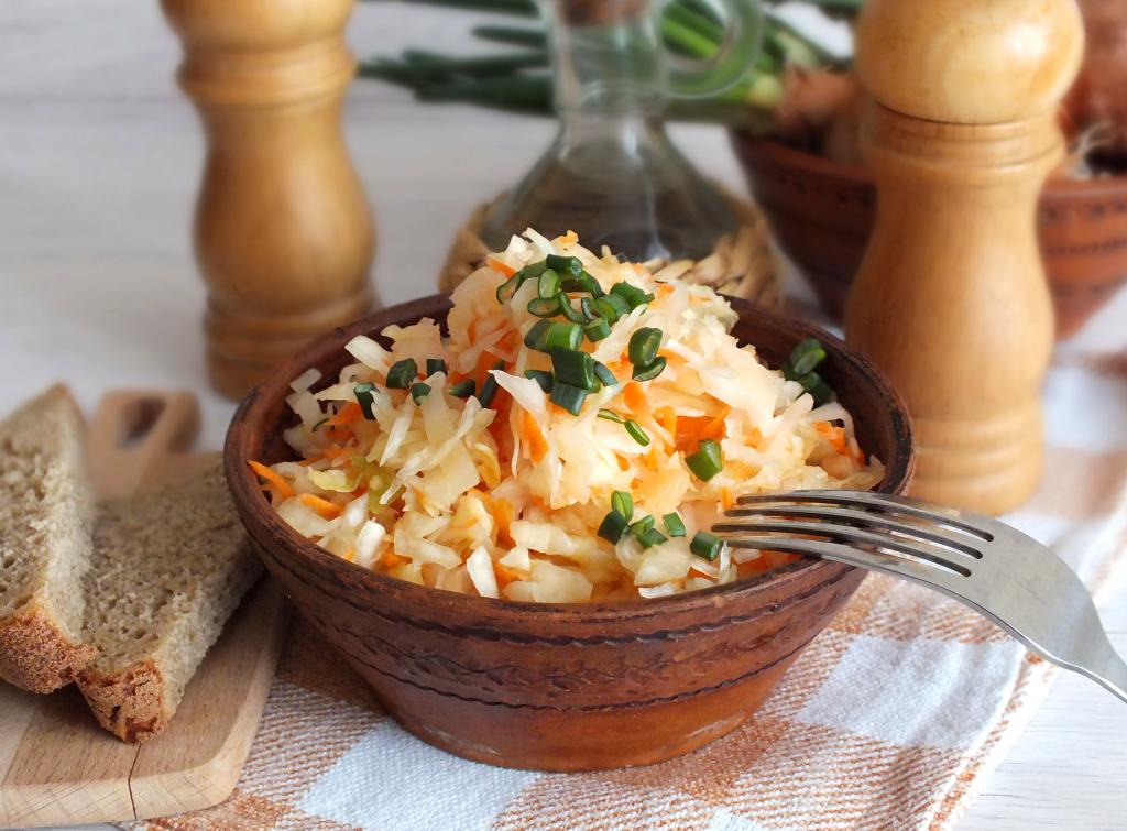 Сочную, хрустящую капусту, квашеную с мёдом, подавайте с растительным маслом и зелёным луком. Отличная домашняя закуска!