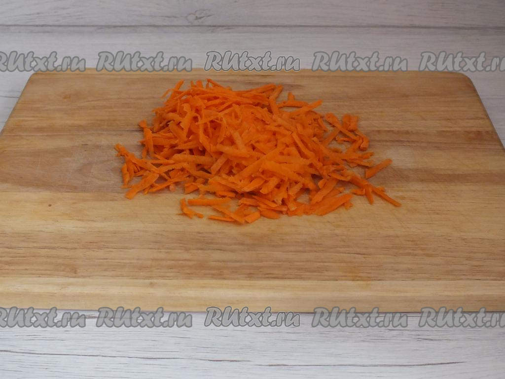 Вымойте, почистите морковь, а затем натрите на крупной тёрке.