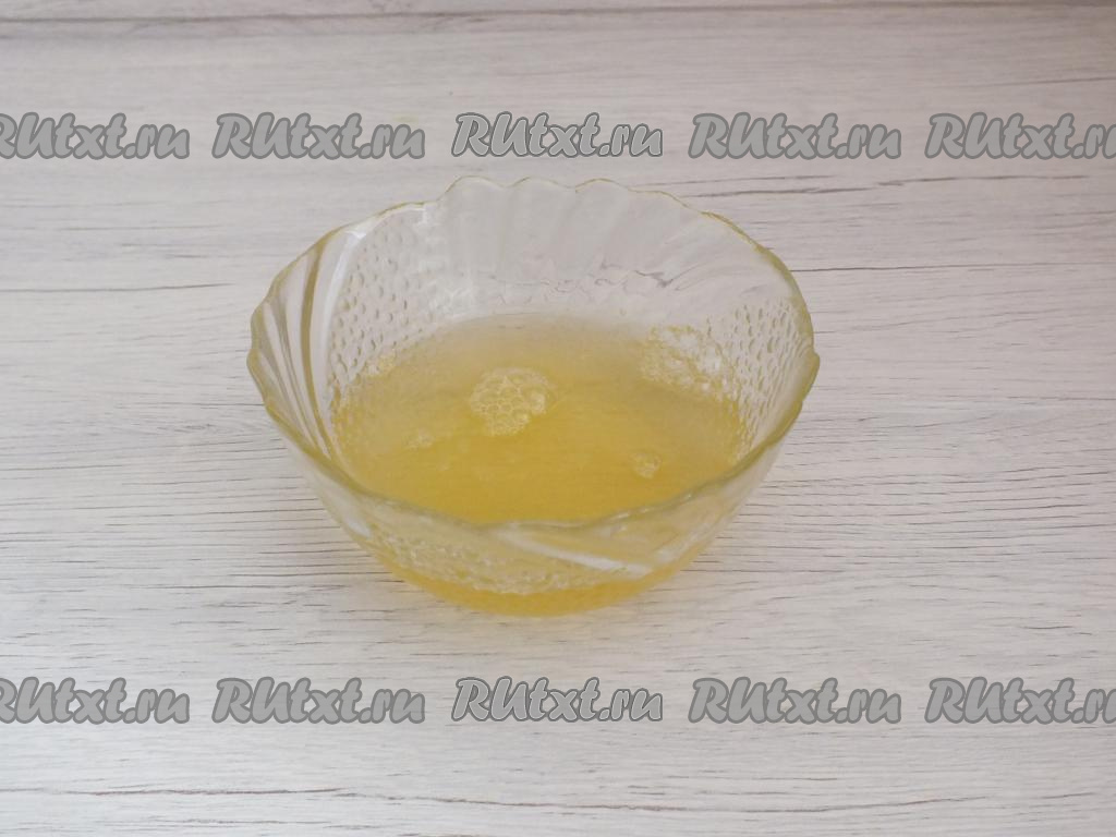 Отдельно смешайте мёд с водой комнатной температуры, хорошо перемешайте.