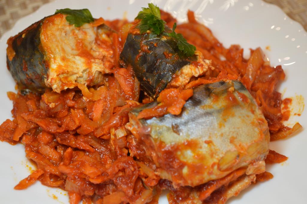 А мы просто скушали скумбрию с тушёными морковкой и луком, было очень вкусно!