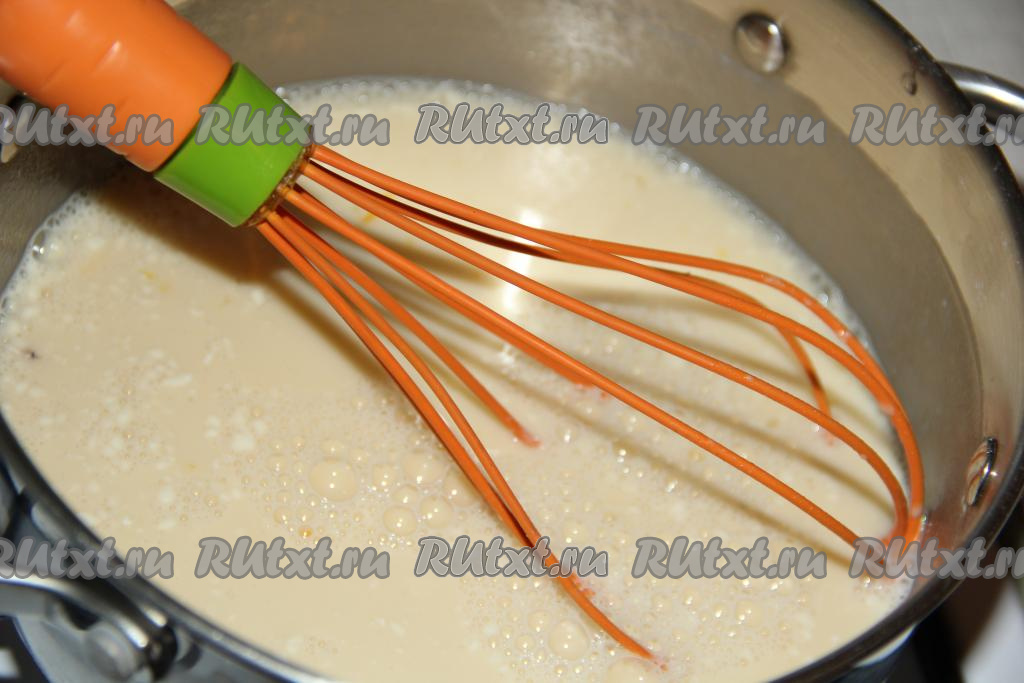 Получившуюся массу тщательно перемешать венчиком и поставить на средний огонь.