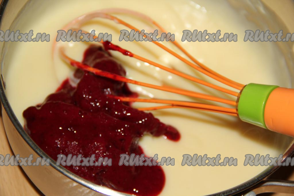 Заварной ягодный крем получается красивым, вкусным, в меру густым, он станет отличным дополнением к различной выпечке, оладушкам и блинам.