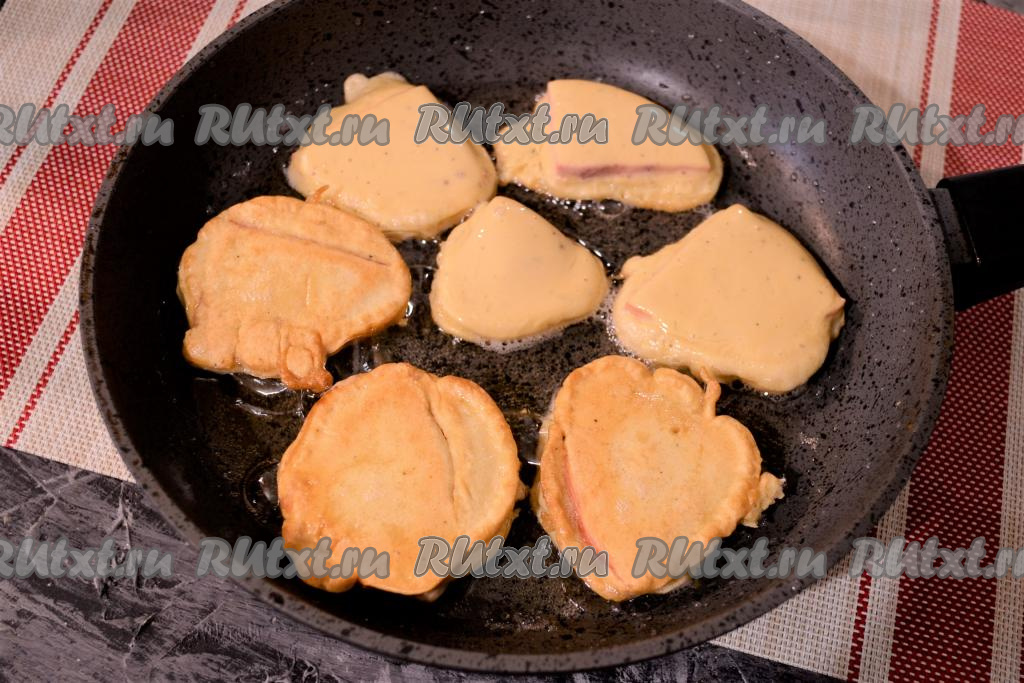 И затем выкладывать вилкой на разогретую с растительным маслом сковороду. Жарить колбасу в кляре на среднем огне до румяности с двух сторон.
