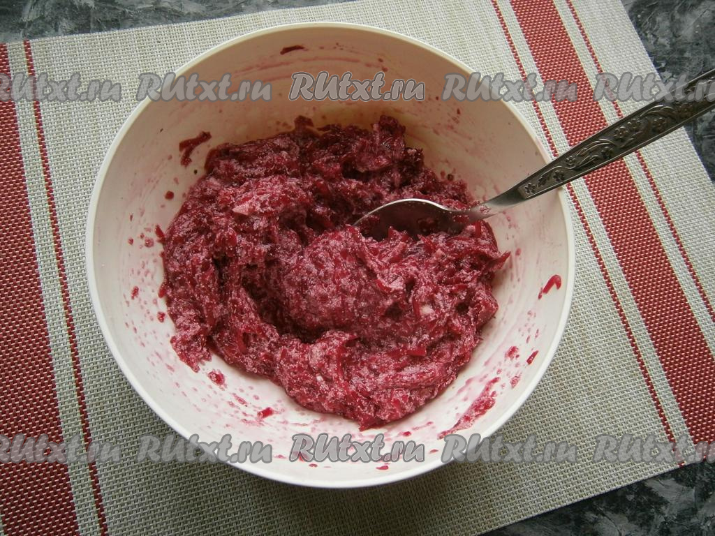 Снова перемешать и оставить свекольную массу на 5-7 минут.