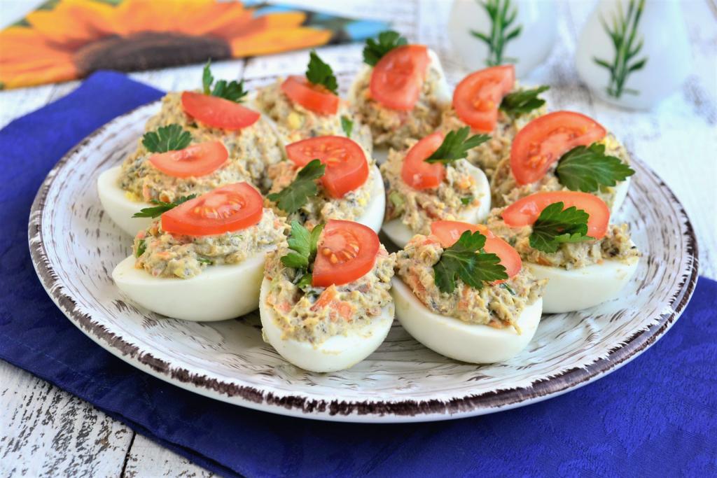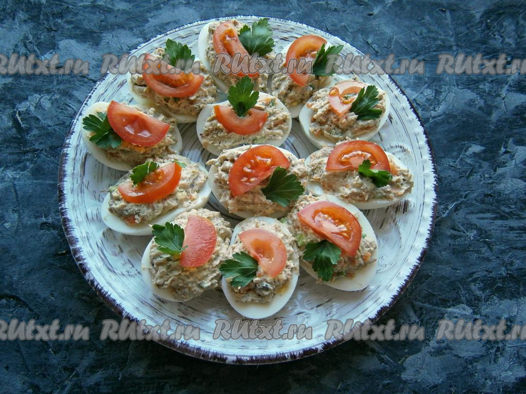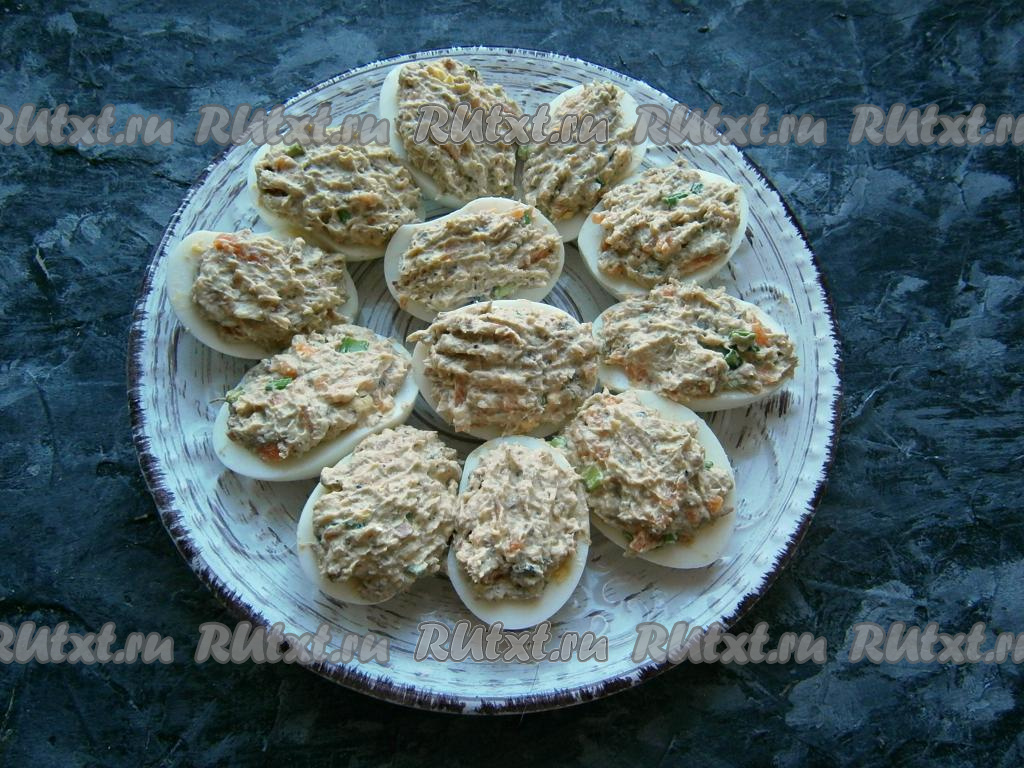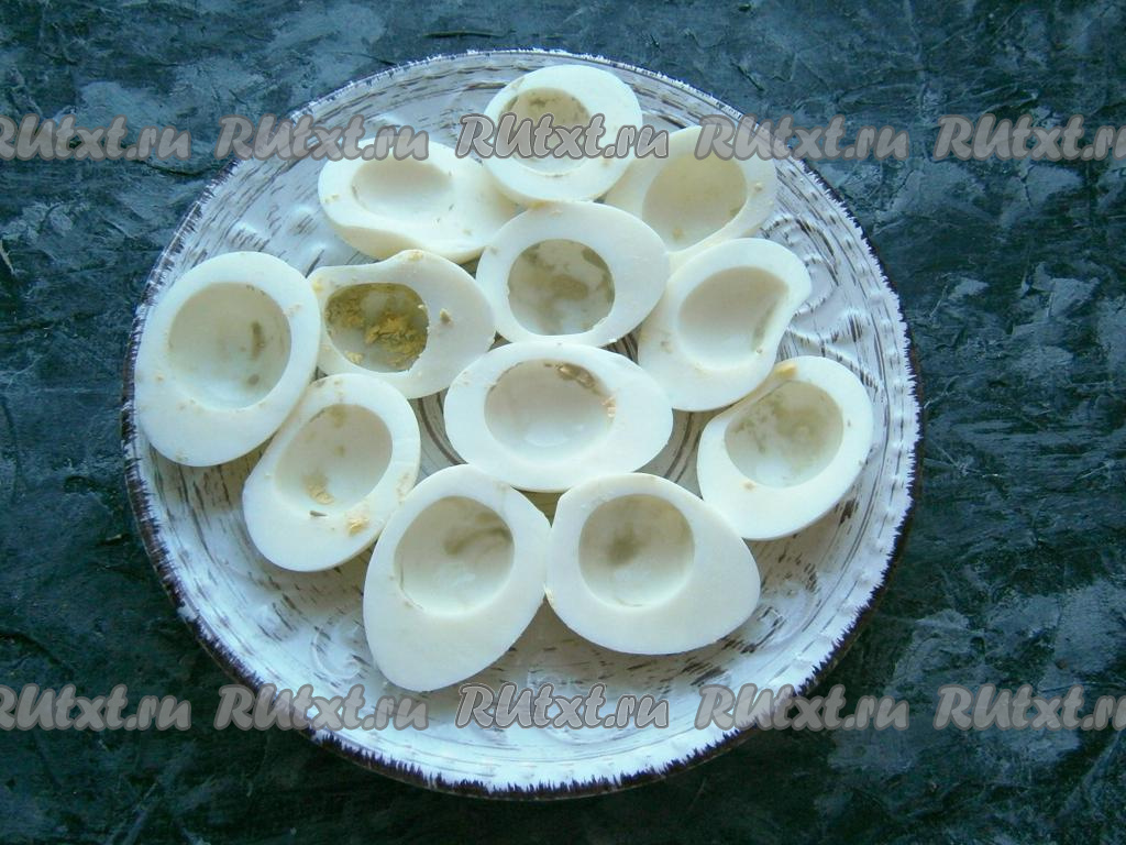 Начинку тщательно перемешать и нафаршировать этой массой белки.