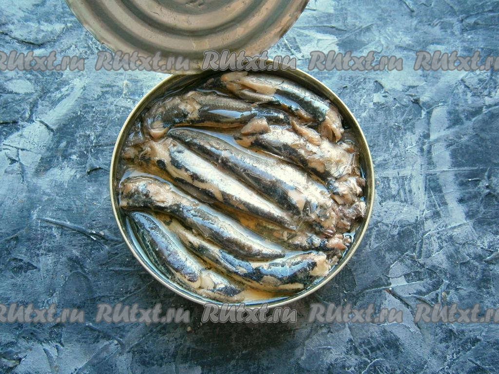 Открыть банку со шпротами, масло слить из баночки (масло нам в дальнейшем не понадобится).