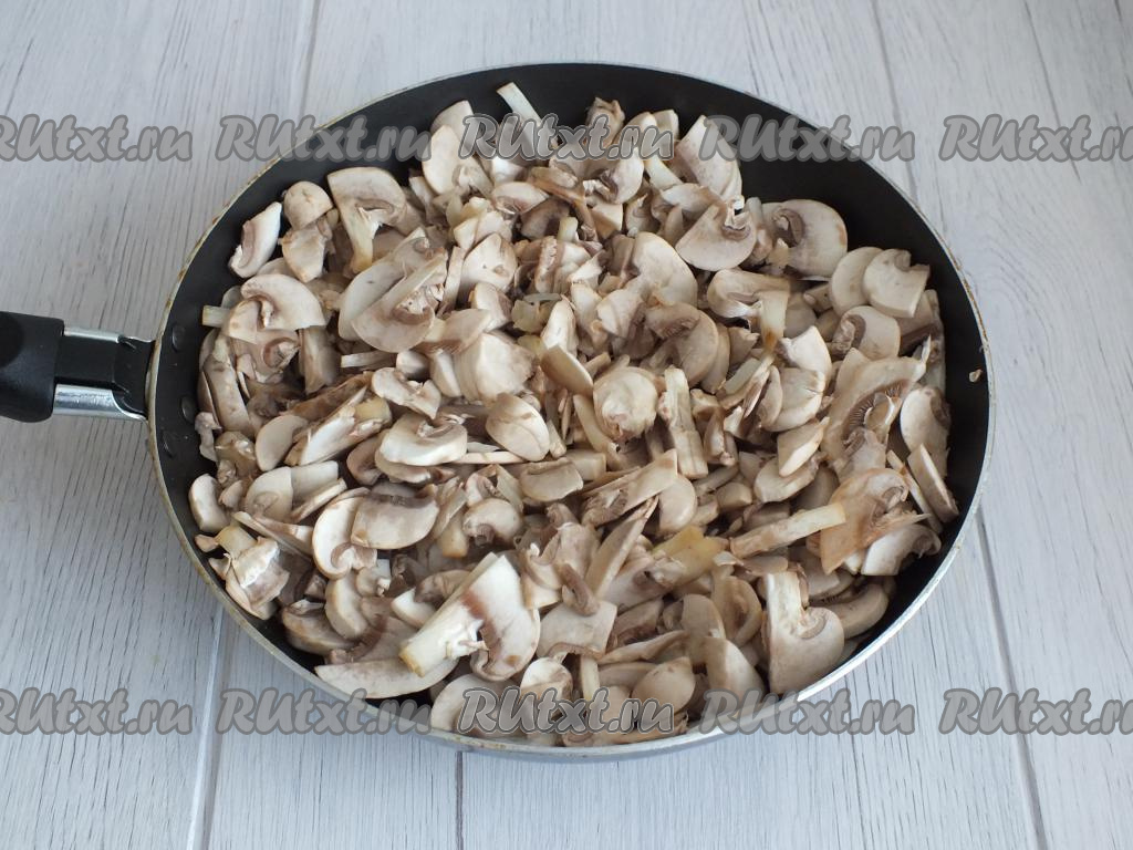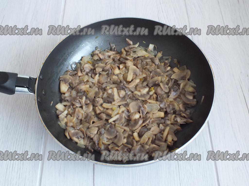 Когда грибы заметно осядут и приобретут тёмный цвет (на этот процесс ориентировочно уходит от 10 до 15 минут), огонь убавьте.