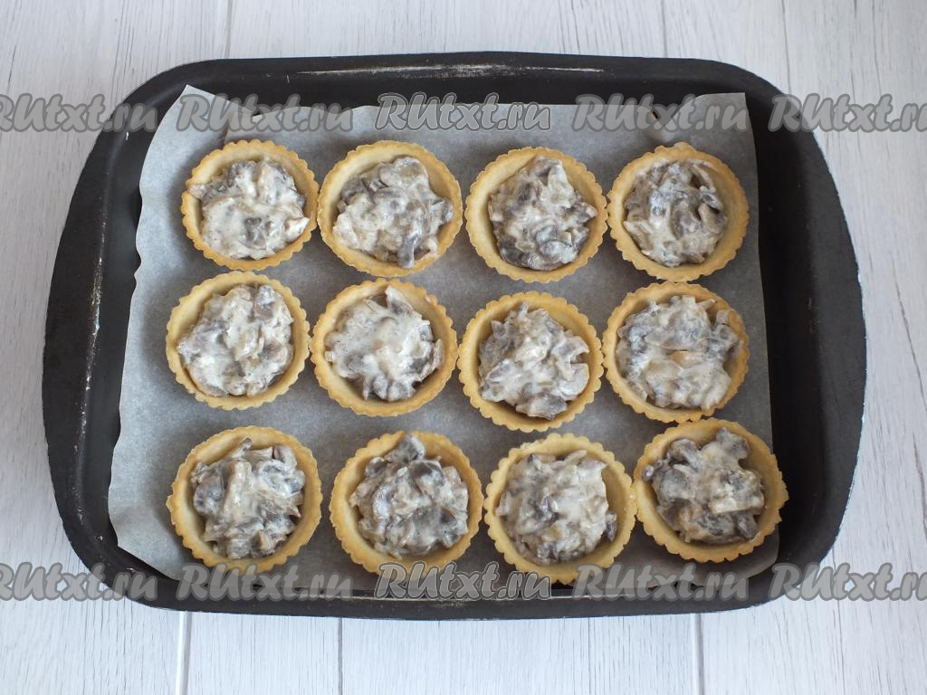 В подготовленные тарталетки разложите грибную начинку.