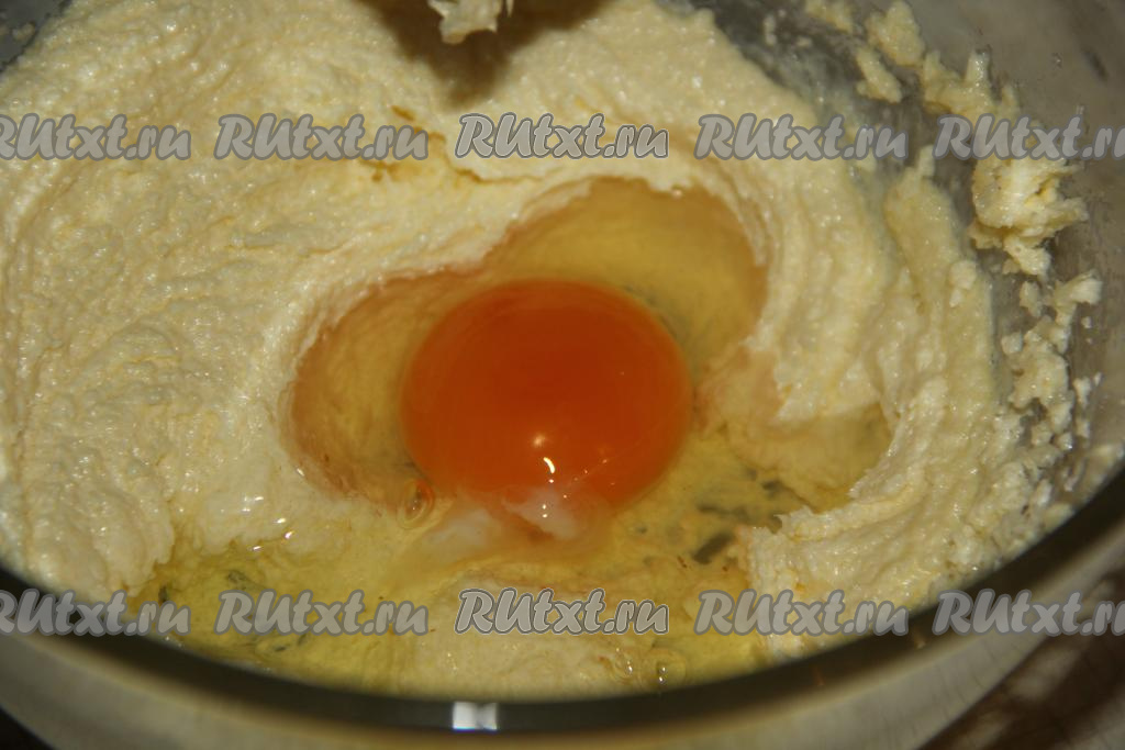В смесь масла и сахара добавить одно яйцо, взбить в течение 1-2 минут с помощью миксера.