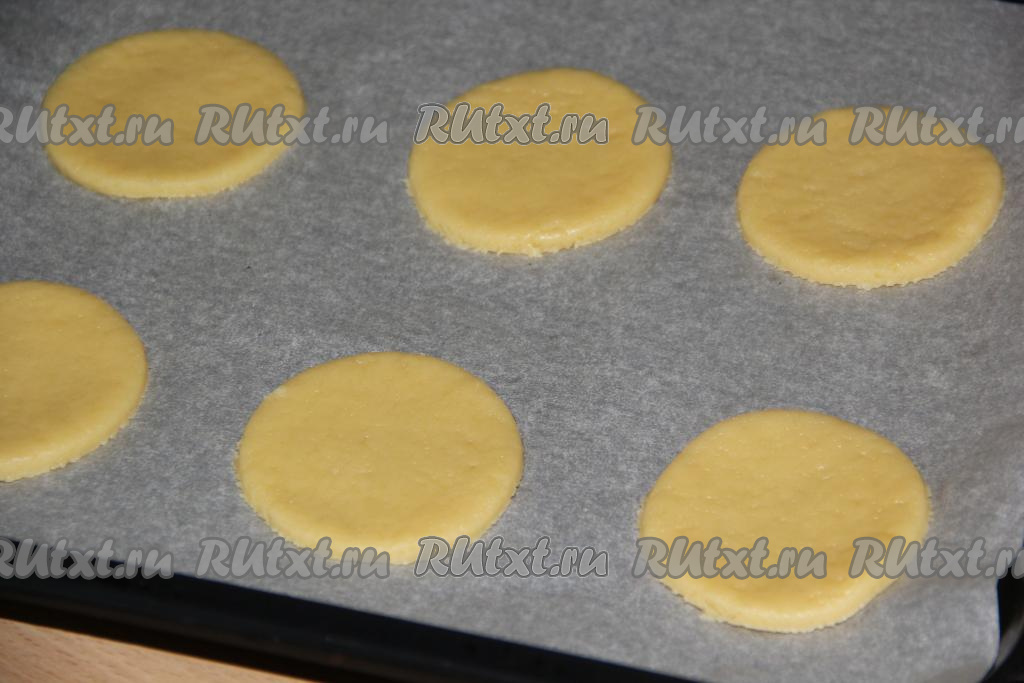 На противень, застеленный пергаментом, выложить кружочки из теста.