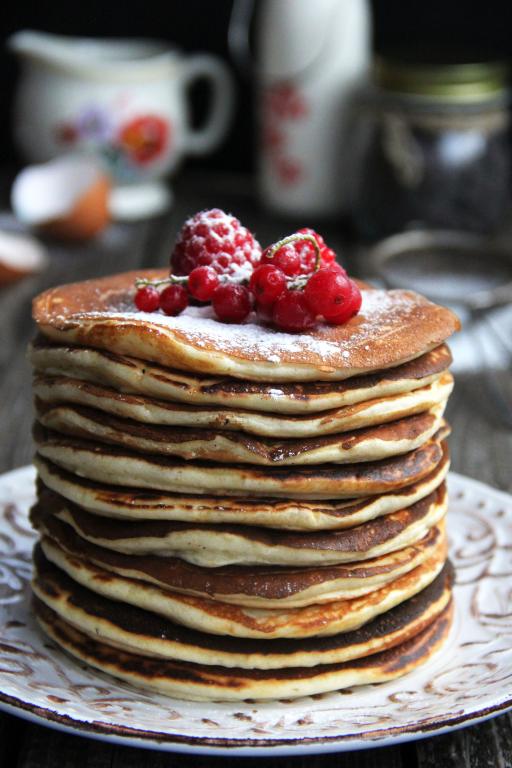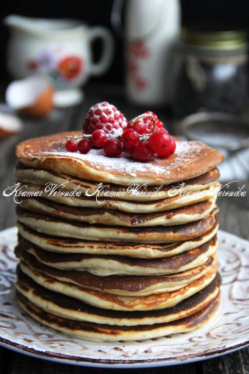 Пожарить на сухой сковороде все панкейки, а затем подать к столу в горячем виде. Панкейки, замешанные на молоке, получаются очень нежными, пышными и вкусными, обязательно попробуйте!