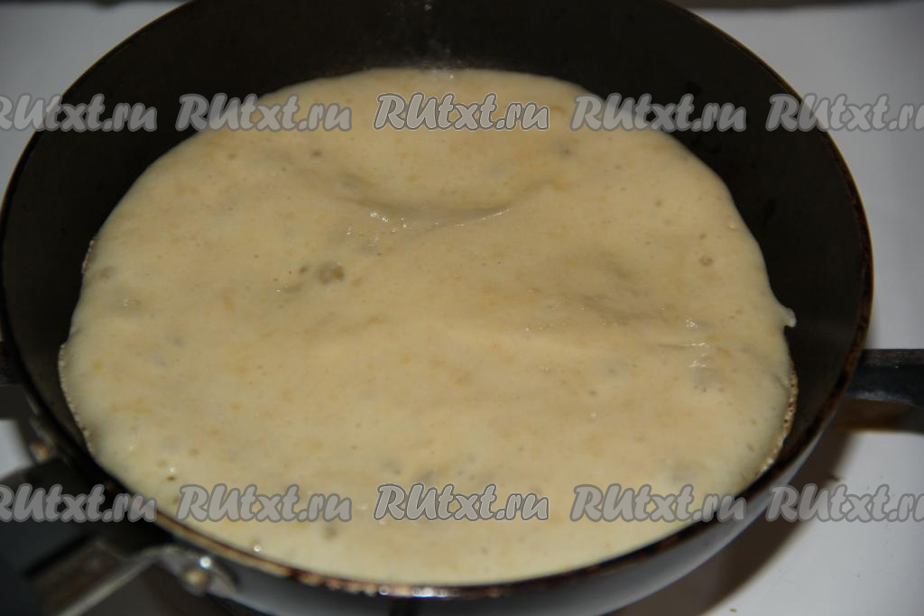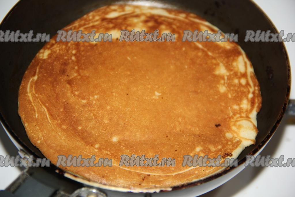 Выпекать панкейк на среднем огне с двух сторон до золотистого цвета, а затем переложить на тарелку.