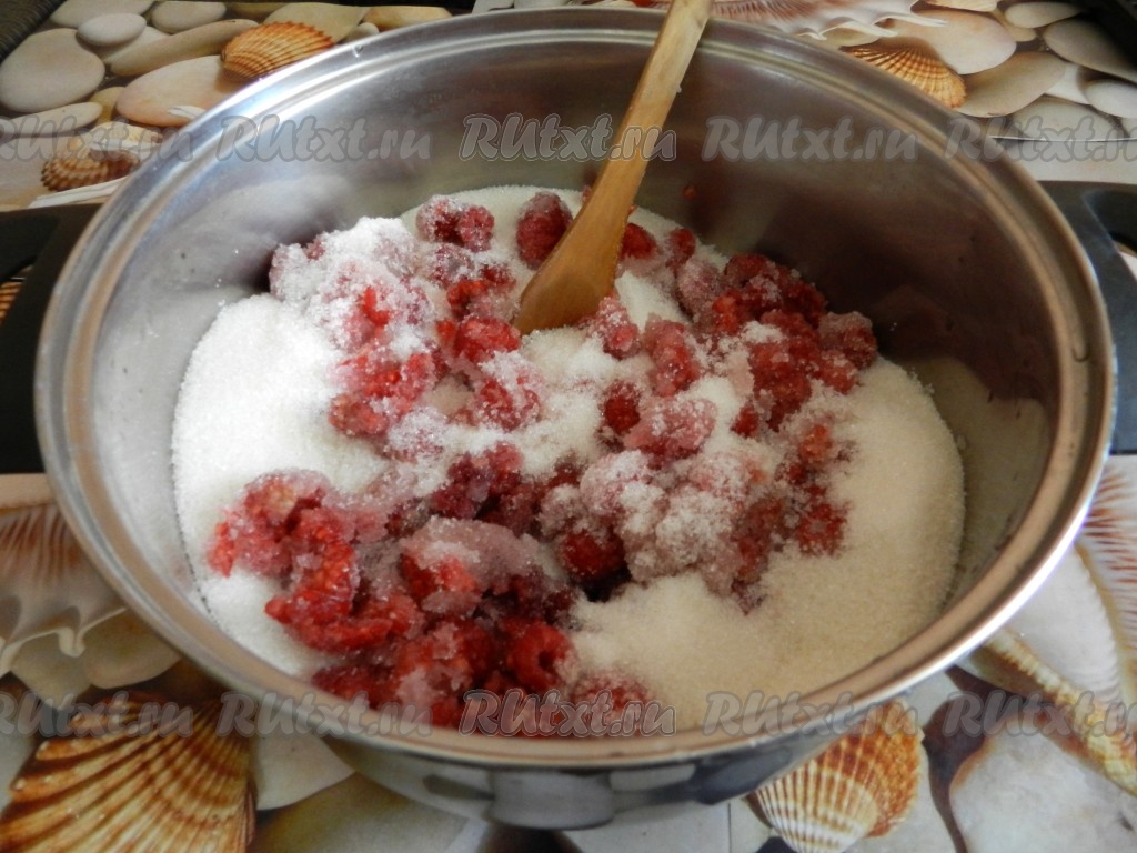 Засыпать малину сахаром и оставить на 2-3 часа, чтобы ягоды дали сок.