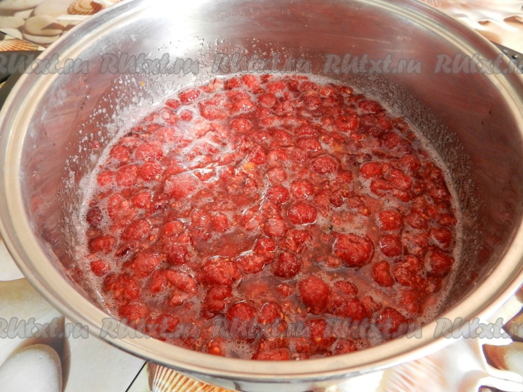 Перемешать и поставить на медленный огонь. Довести малиновое варенье до кипения при постоянном помешивании, чтобы сахар не прилип ко дну посуды и не подгорел.