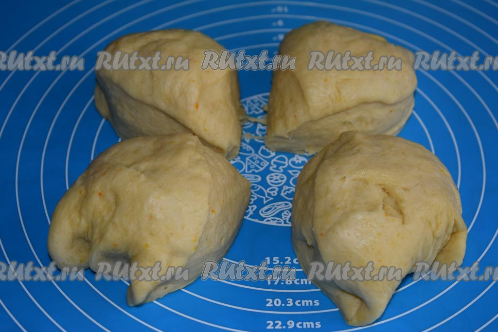 Разрезаем тесто на 4 равные части, затем каждую часть делим ещё на 4 части, в итоге у нас получается 16 кусочков.