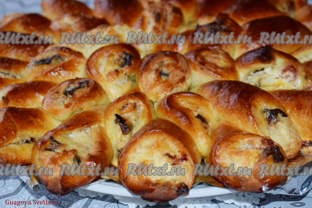 Готовый пирог будет чудесно пахнуть творогом и сухофруктами.