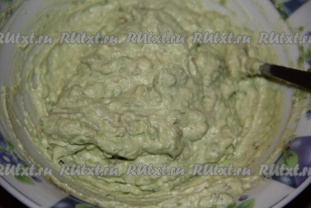 Вилкой перемешать крем из авокадо и творожного сыра до однородного состояния.