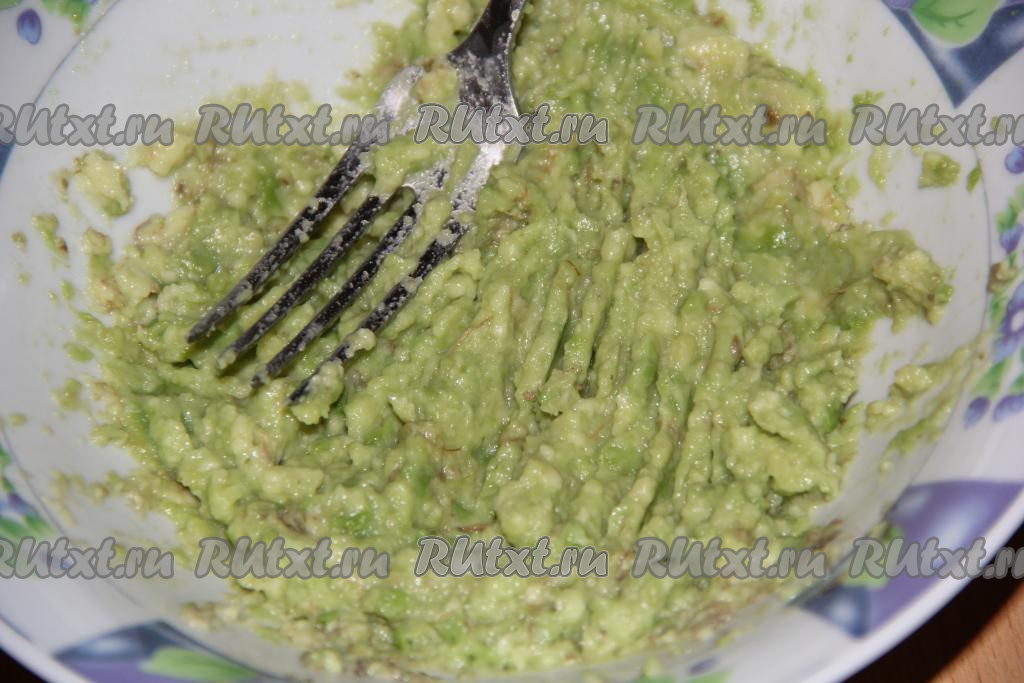 Размять мякоть авокадо вилкой до пюреобразного состояния.