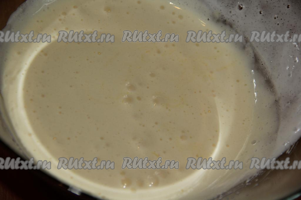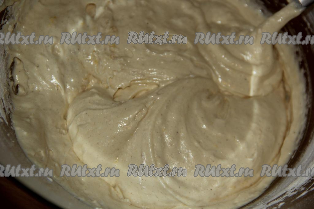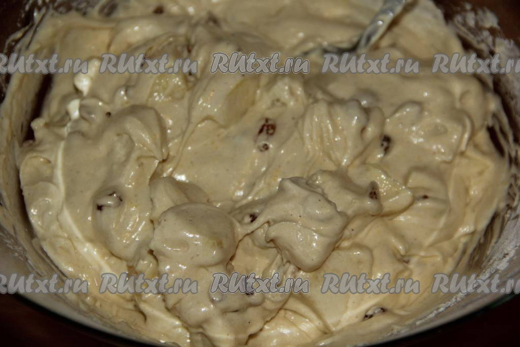 Перемешать тесто лопаткой. Тесто для шарлотки должно получиться не густым (напоминающим сметану средней густоты), и очень воздушным.