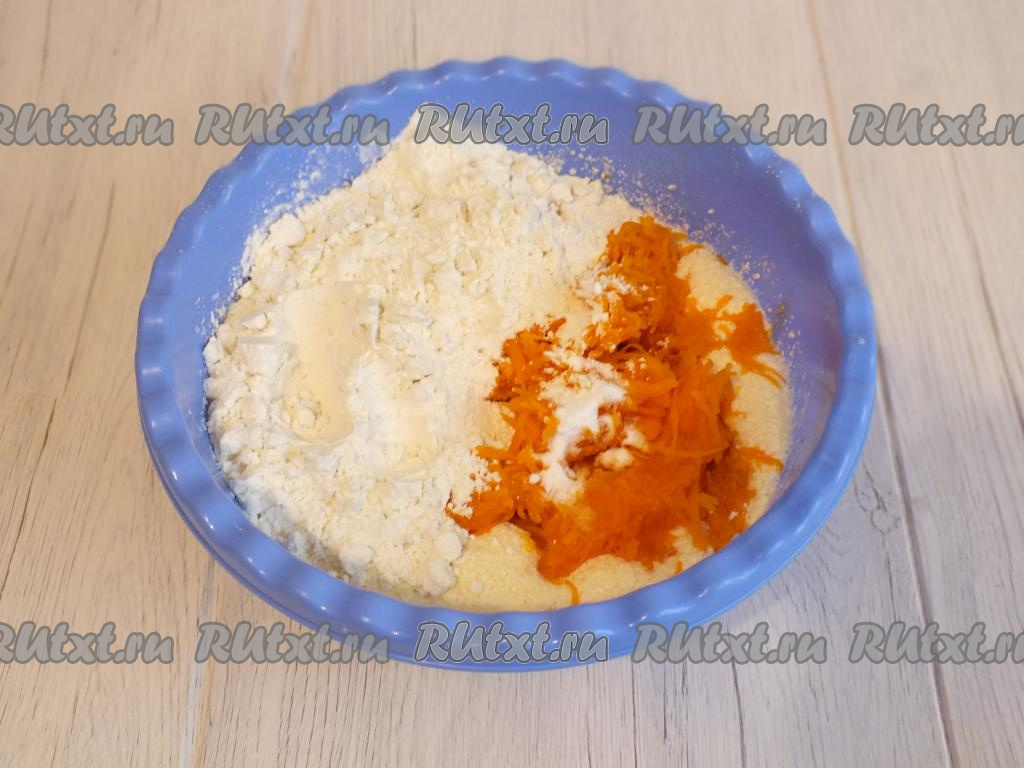 С тыквы отожмите руками сок. Затем мякоть тыквы переложите в миску с лимонно-масляной массой. Сюда же всыпьте муку и соду.