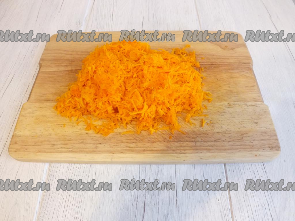 Приготовление пирога с тыквой и лимоном начните с подготовки тыквы. Её необходимо очистить от кожуры, а затем натереть на мелкой тёрке и отставить в сторону.