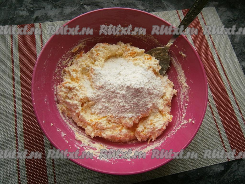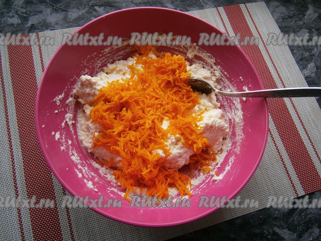 Теперь к творожной массе добавить остывшую морковь.