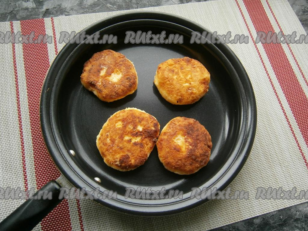 Растительное масло разогреть в сковороде, выложить морковно-творожные сырники и жарить их на среднем (или небольшом) огне до румяности с двух сторон.