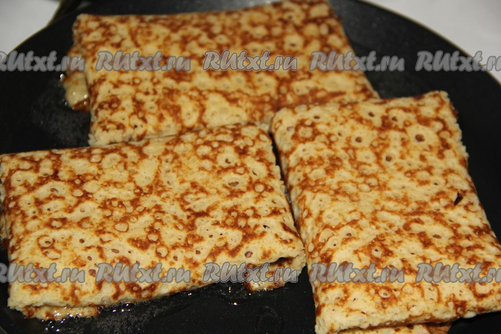 Блинчики с начинкой обжарить с двух сторон на небольшом огне до золотистого цвета.