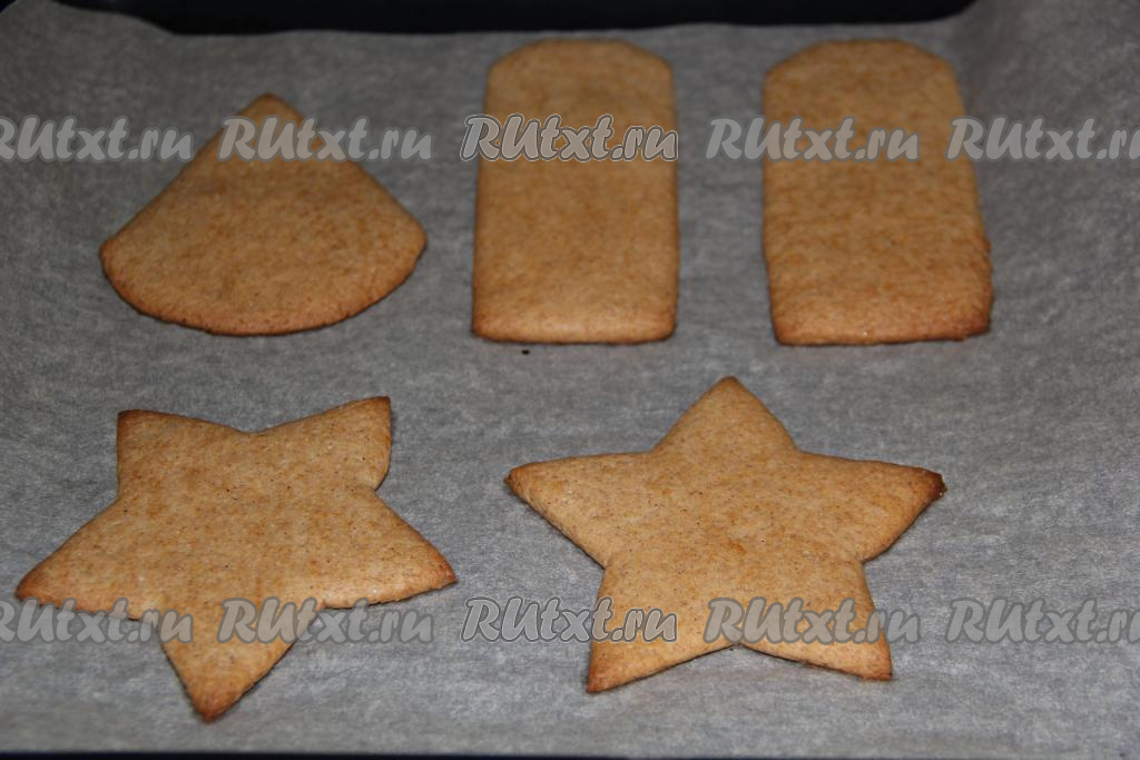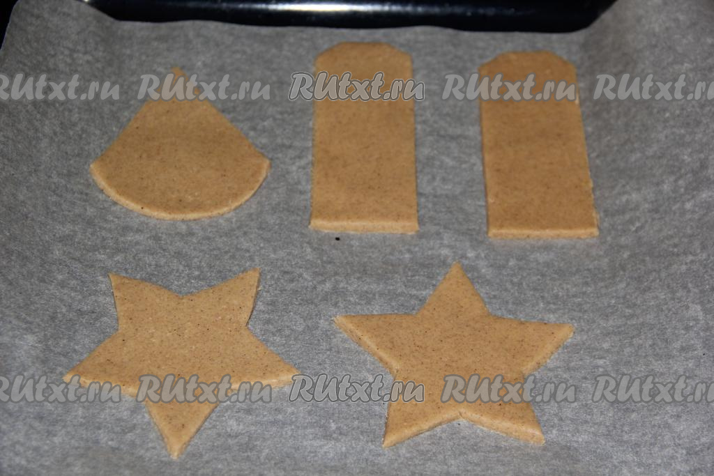 Противень застелить пергаментом и выложить вырезанное печенье.