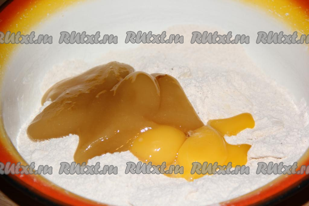 Добавить мёд и желтки.