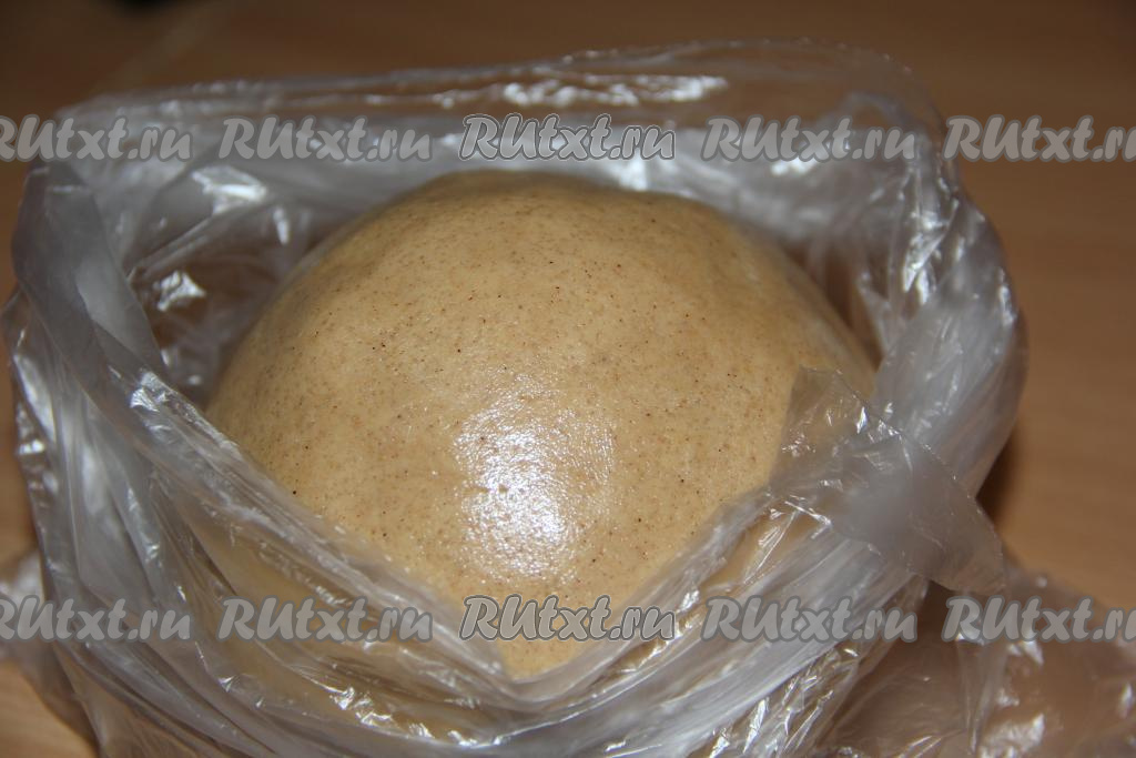Замесить мягкое и пластичное тесто. Поместить тесто в пакет и убрать в холодильник на сутки.