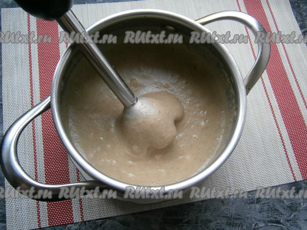 Горячий суп пюрировать погружным блендером до однородной, бархатистой консистенции.