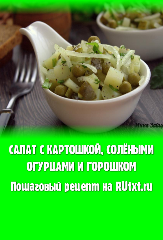 Очень вкусный, сытный салат, приготовленный с картошкой, солёными огурцами и горошком, можно сразу подавать к столу. Обязательно приготовьте этот салатик, тем более, что его можно кушать даже в Пост.