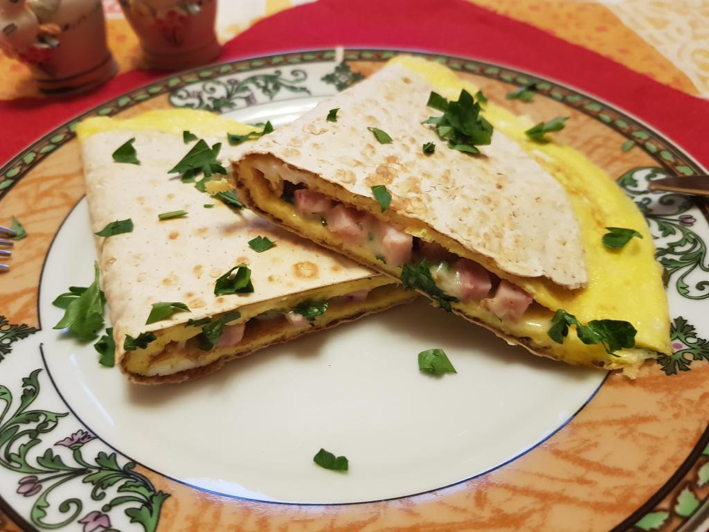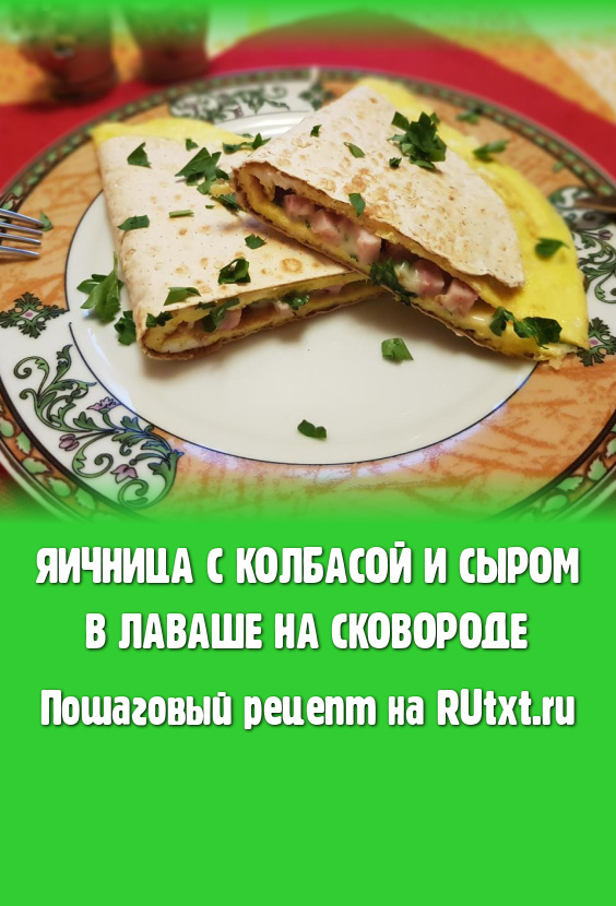 Яичница, приготовленная с колбасой и сыром в лаваше на сковороде, и порадует отменным вкусом, и насытит, попробуйте!