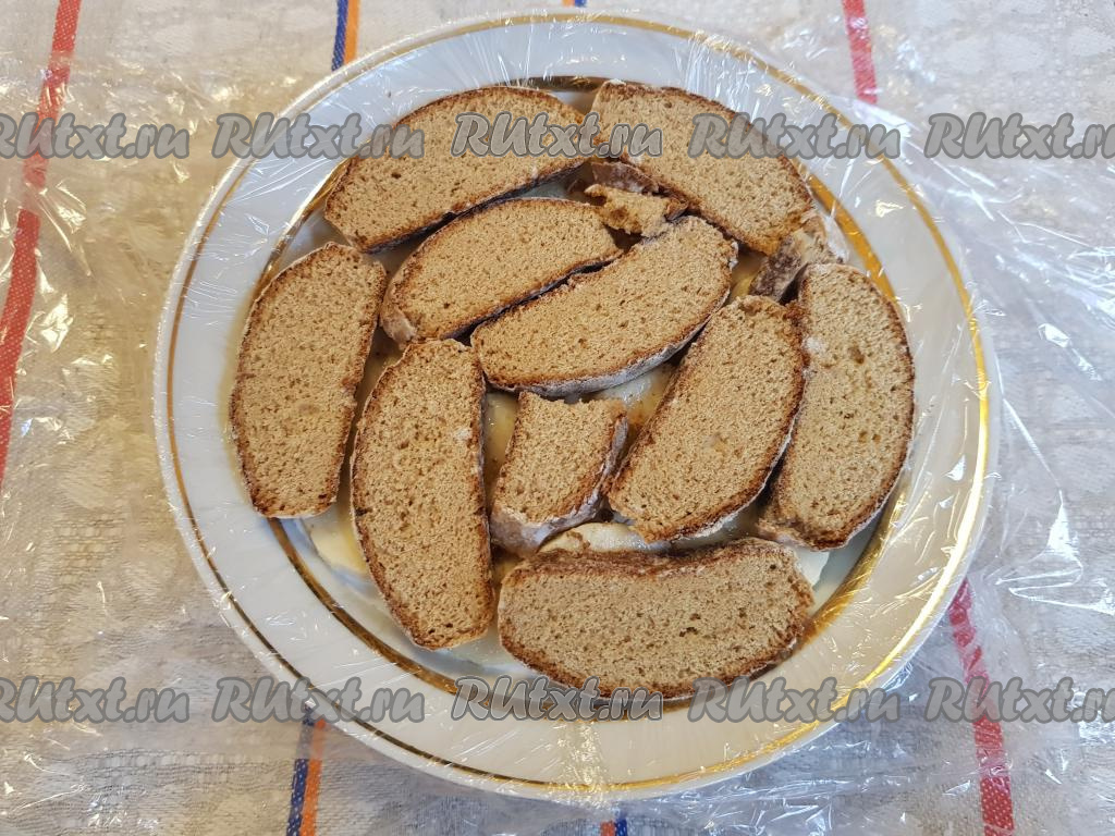 Оставшиеся кусочки пряников перетереть руками в крошку, которая будет использована для обсыпки торта.