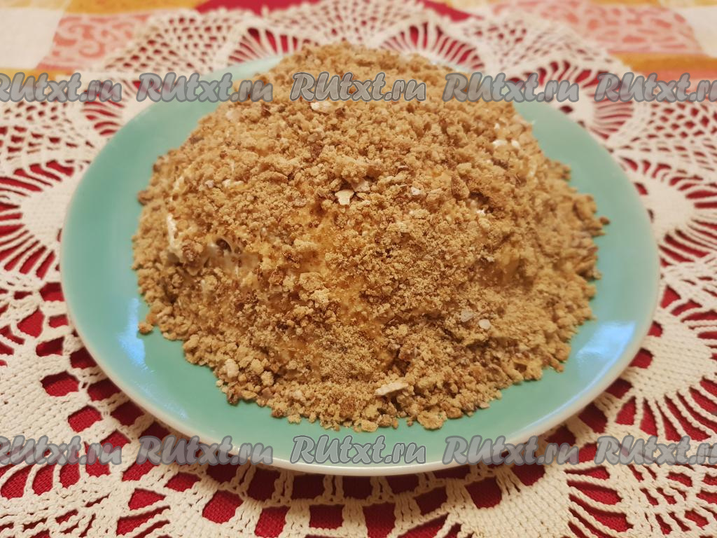Сверху обсыпать торт крошкой из пряников (следует обсыпать перед подачей на стол).