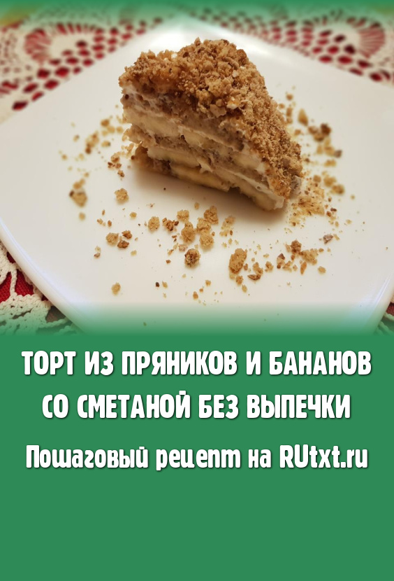 Бывают ситуации, когда очень хочется побаловать семью вкусным домашним десертом и, желательно, чтобы готовился он несложно. В таком случае вам на выручку придёт рецепт торта из пряников и бананов со сметаной, который готовится без выпечки. В состав этого десерта входят всего лишь три ингредиента (пряники, банан и сметана), которые можно купить в любом магазине. Несмотря на свою простоту, торт получается невероятно вкусным и нежным, тающим во рту, поэтому прекрасно подойдёт не только для семейного чаепития, но и для праздничного стола. Обязательно попробуйте!