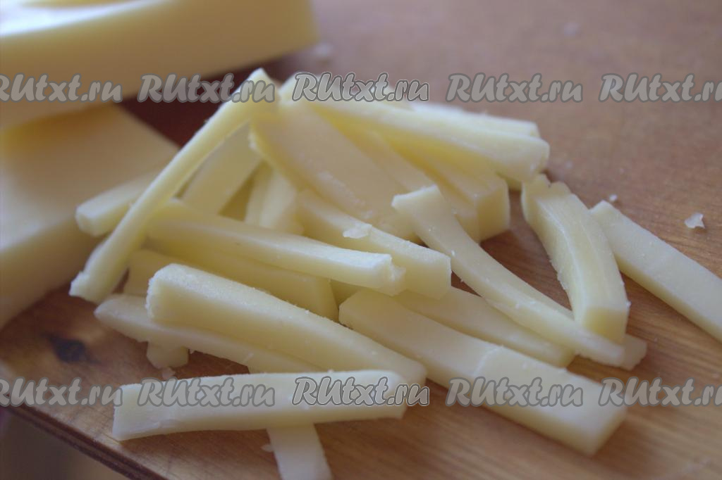 Сыр нарезать тонкими полосками.