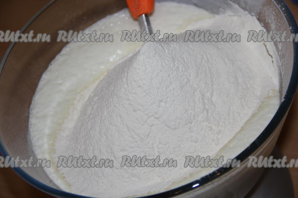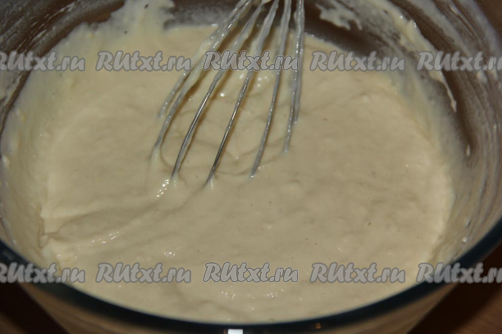 Всыпать просеянную муку в получившуюся массу, перемешать тесто венчиком.