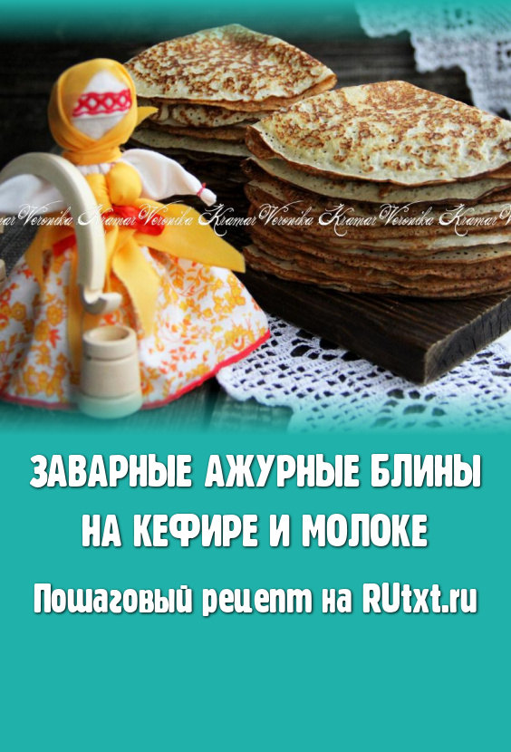 Заварные блины, замешанные на молоке и кефире, подаём к столу со сгущёнкой, сметаной или топпингом. Такие ажурные блинчики несомненно понравятся и взрослым, и детям, попробуйте!