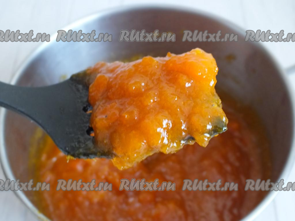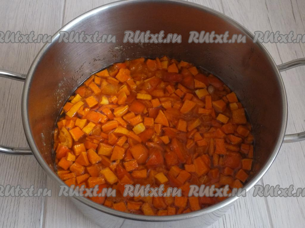 Вот так выглядит варенье из тыквы с мандаринами после 6-ти часов выстаивания.