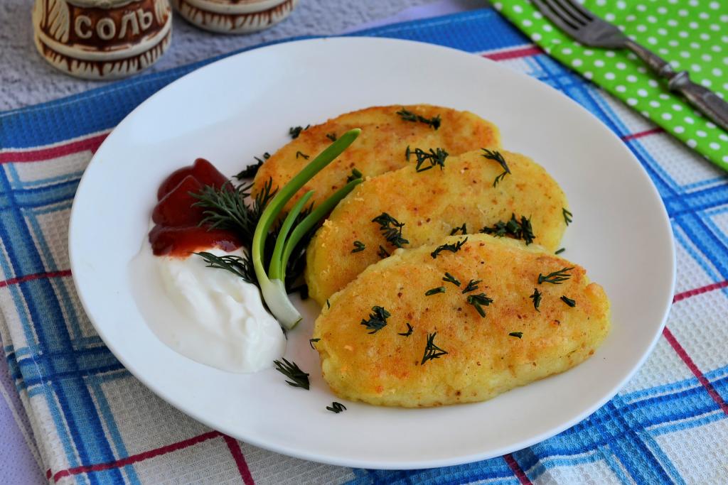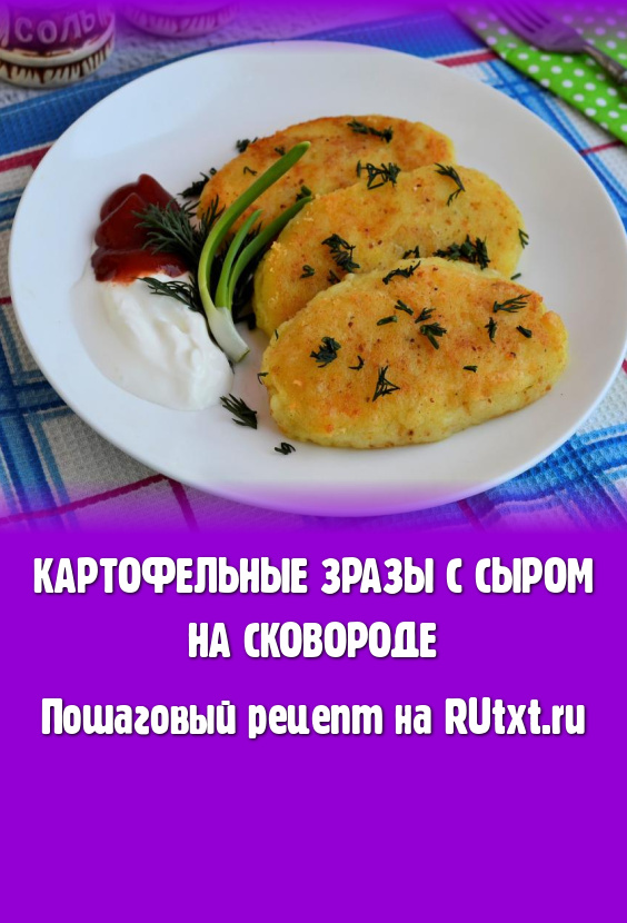 Необычайно вкусные картофельные зразы, приготовленные с сыром на сковороде, подавать горячими или тёплыми со сметаной, кетчупом или соусом.