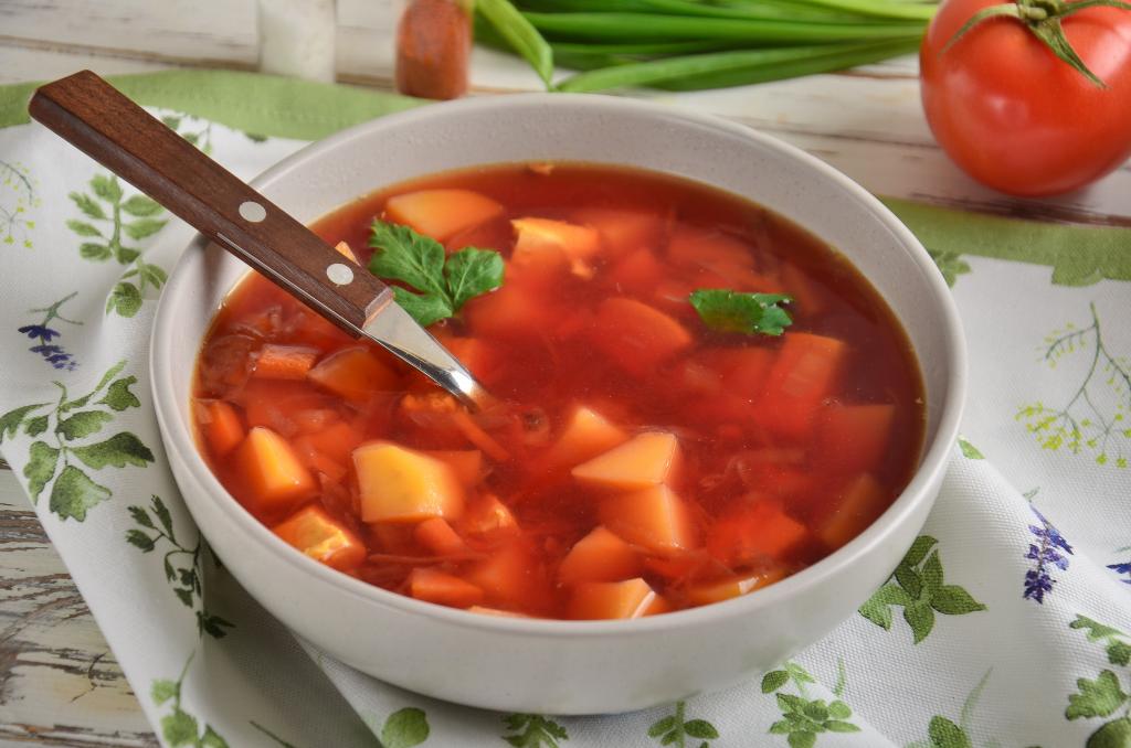 В процессе варки свекольника достаньте куриное мясо и разберите его на небольшие кусочки, затем верните назад в кастрюлю. Можно также добавить за 5-7 минут до готовности 1 столовую ложку яблочного уксуса или аналогичное количество лимонного сока - это придаст кислинку и сохранит яркий цвет. Подавать свекольник с курицей нужно в горячем виде, дополнив свежей зеленью и сметаной.