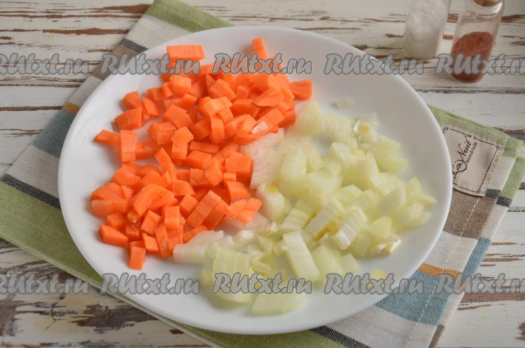 Оставшиеся очищенные морковь и лук мелко нарежьте.