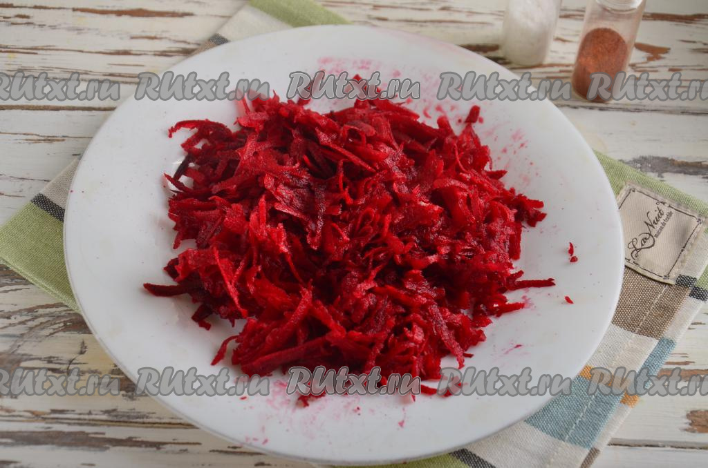 Свеклу почистите, вымойте, натрите на тёрке