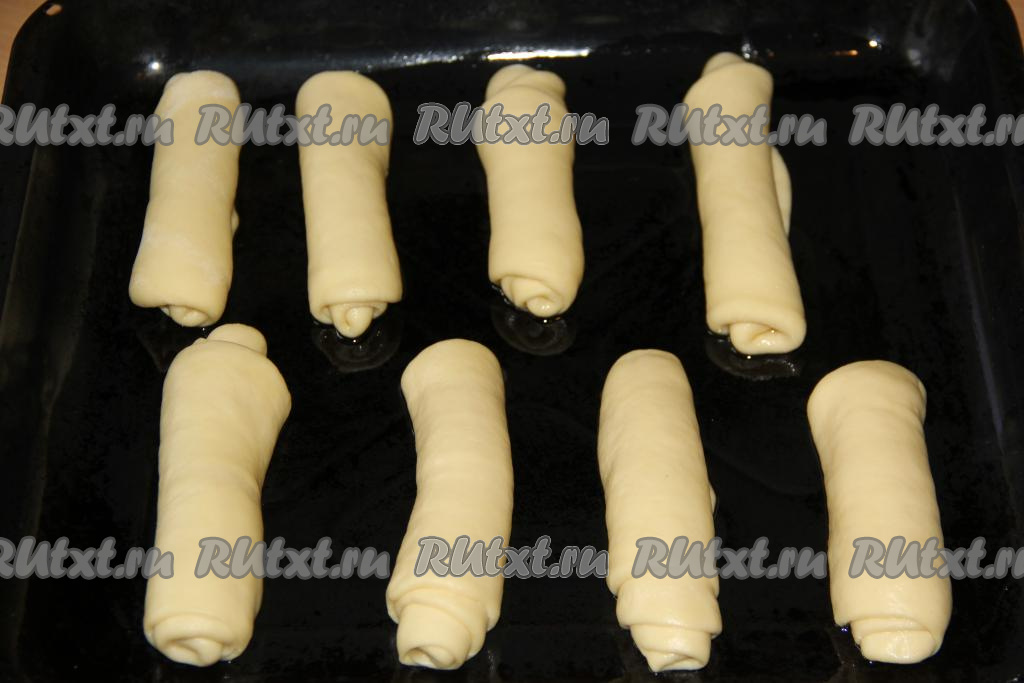 Противень смазать растительным маслом, выложить на него заготовки булочек на некотором расстоянии друг от друга.
