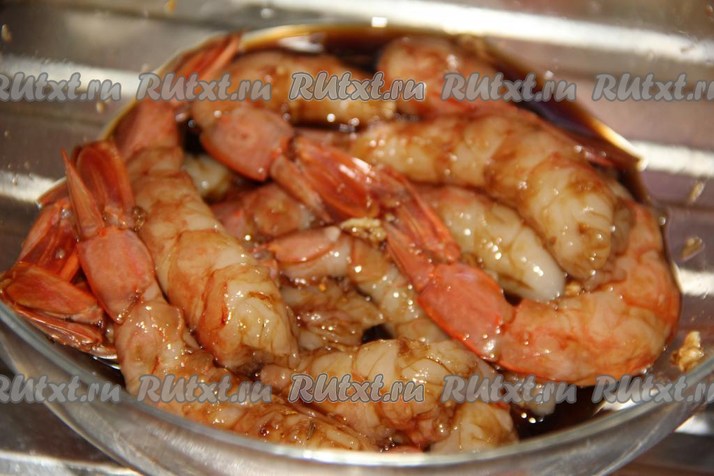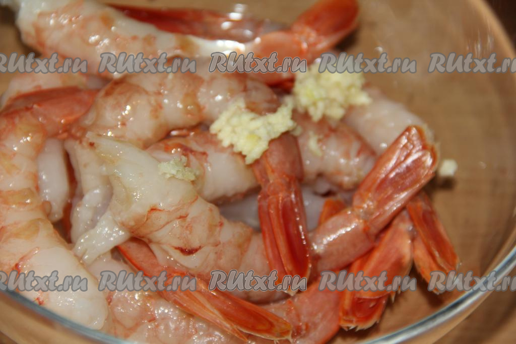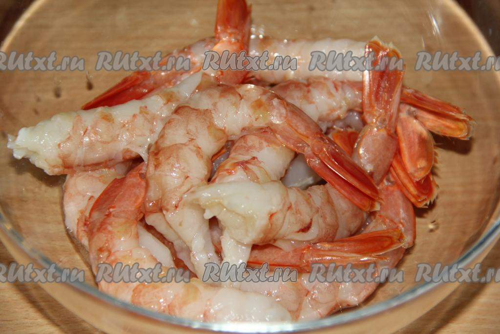 Лангустинов разморозить при комнатной температуре. Очистить лангустинов от головы и панциря, хвостики я решила оставить.