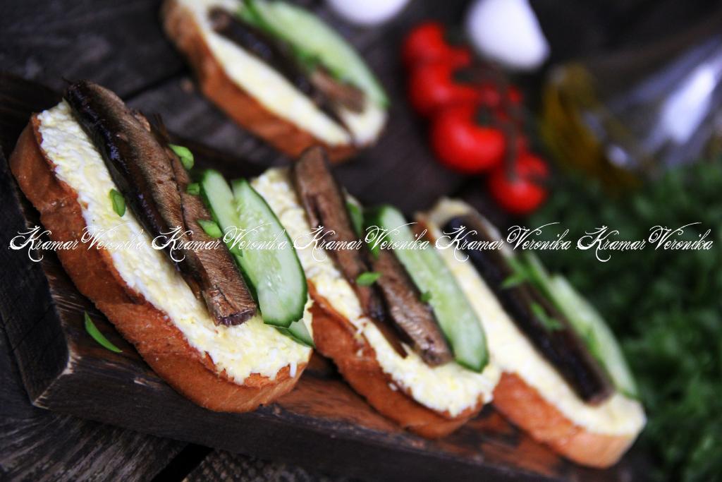 Хочу предложить рецепт приготовления бутербродов со шпротами, свежим огурцом и намазкой из яиц. Намазка из варёных яиц и майонеза получается очень нежной и хорошо сочетается со шпротами, а свежий огурчик прекрасно дополняет бутербродики. Хлеб лучше поджарить на сковороде или подсушить с помощью тостера. Аппетитные, вкусные, сытные бутерброды, приготовленные по этому рецепту, будут уместны не только на повседневном, но и на праздничном столе!